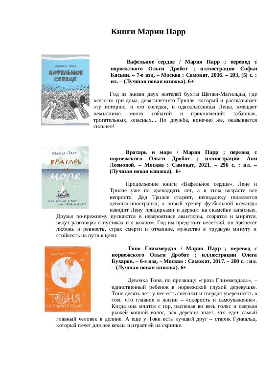 Статья о книгах, переведенных на русский язык: "Вафельное сердце", "Вратарь и море" и "Тоня Глиммердал".