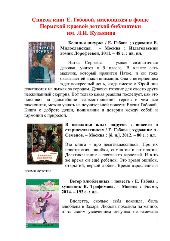 Список книг Елены Габовой, имеющихся в фонде Пермской краевой детской библиотеки им. Л.И. Кузьмина.