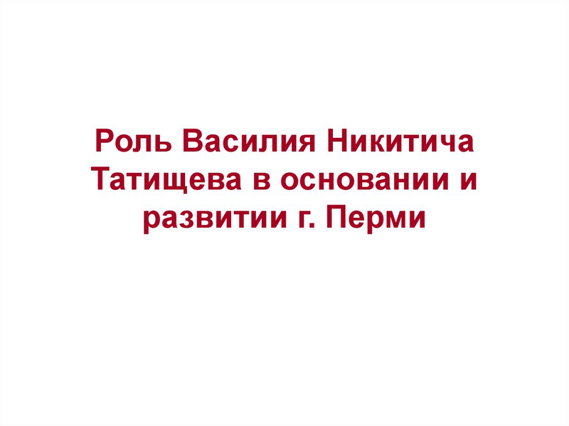 Об основании и проектировании Мотовилихинского медеплавильного завода В. Н. Татищевым.